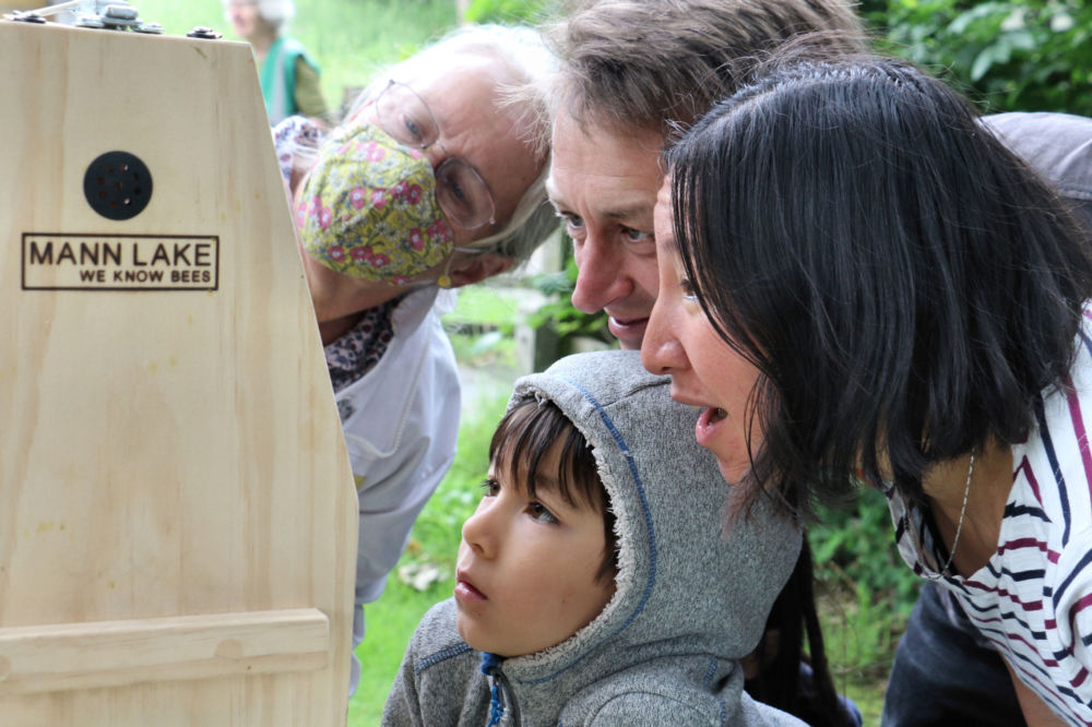 The children, matched by their parents, were spellbound as they watched the bees at work inside the hive, and learned about the intricate life cycle of workers and drones, and the all-important Queen.