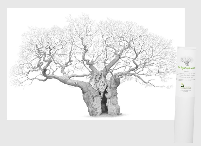 A print of the stunning and intricate drawing of The Royal Oak by Mark Frith. The Royal Oak is one of the most recognised veterans in the Park, designated an ‘iconic tree’ by the Ancient Tree Forum. Mark was the artist of a popular exhibition at Kew Gardens ‘A Legacy of Ancient Oaks’ and seeing these inspired the Friends to commission this ‘The Royal Oak’ artwork. Sales will help fund projects in the Park.
